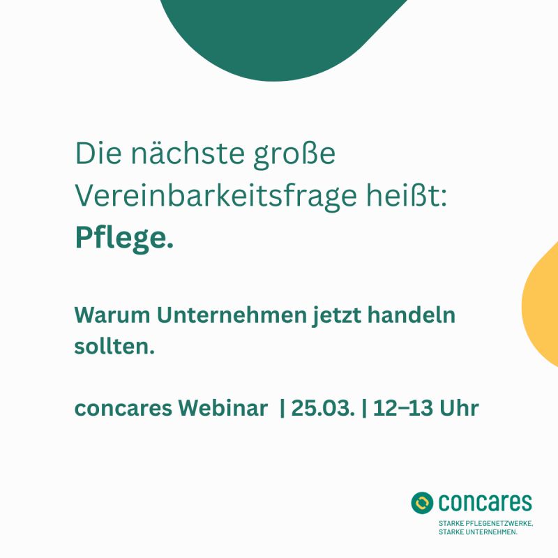 Deshalb gehen wir jetzt den nächsten Schritt und haben unsere dritte Marke concares, Netzwerke für Beschäftigte mit Pflegeverantwortung, initiiert.