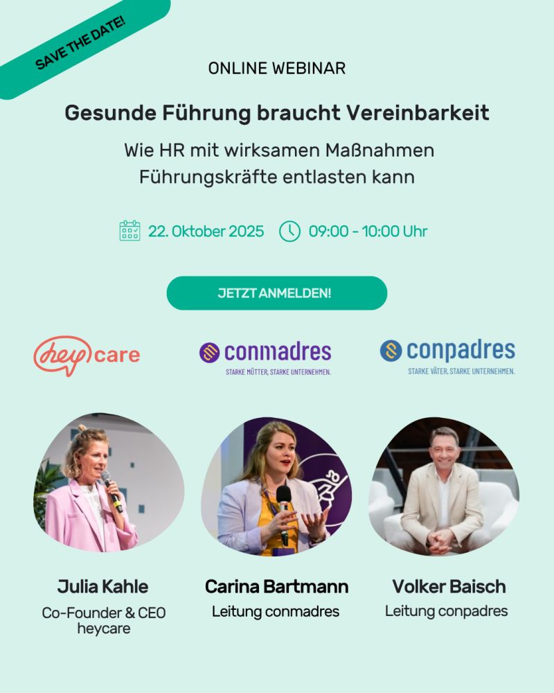 Ich freue mich sehr auf unsere Austausch mit Julia Kahle von heycare (former heynanny) und darauf, zu zeigen, wie Vereinbarkeit zur strategischen Stärke in Unternehmen wird!